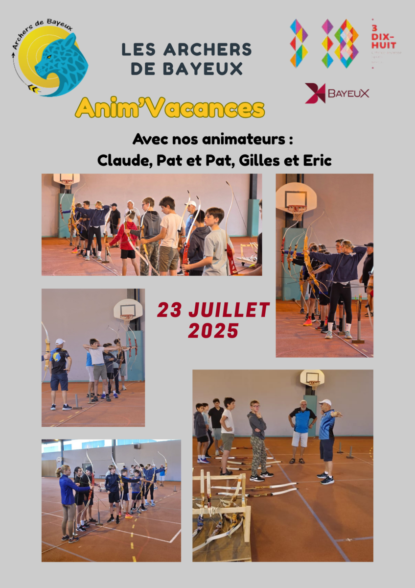 Ce matin, nos animateurs ont encadré une initiation pour le 3-18 de Bayeux. Eric, Claude, Gilles et nos 2 Patrick se sont donné rendez-vous à l'aire couverte (qui est à la bonne température pour pratiquer...profitons-en !) car pendant quelques heures, les jeunes se sont essayé au tir à l'arc suivant le programme estival pour les jeunes. Cela aura t'il éveillé quelques vocations? Affaire à suivre !